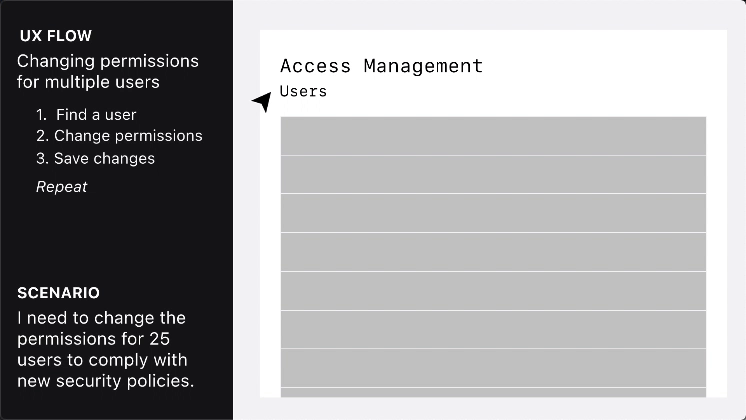 To help inform my own understanding of the space, I conducted a competitive analysis to compare and document access management designs from enterprise and B2B SaaS tools.