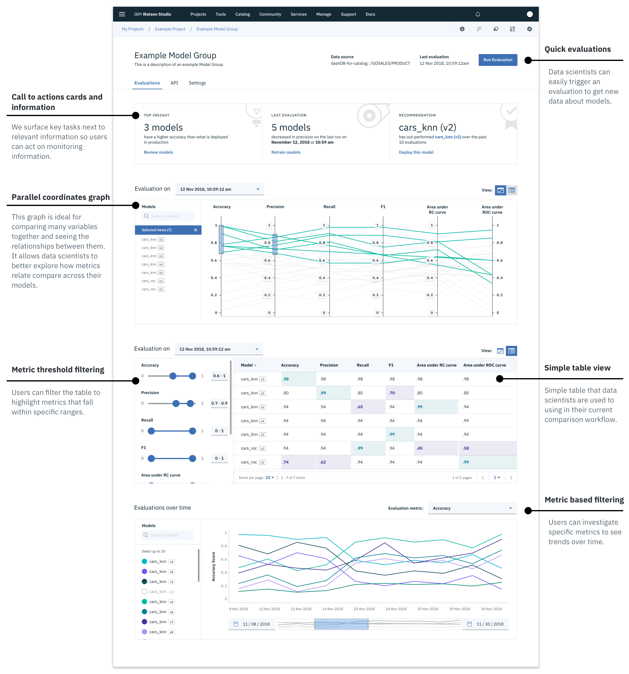 When the project was started, design and development both understood that monitoring and comparison capabilities were real needs for data scientists. However, development already assumed a specific way for data scientists to compare models.